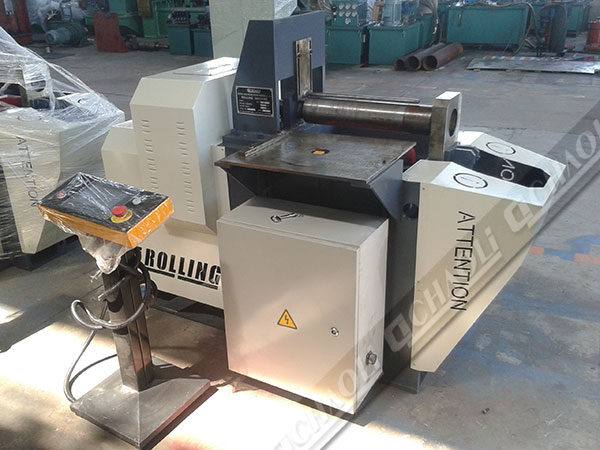 二輥卷板機其一輥為鋼輥,另一輥為鋼輥芯外包彈性層,板材置于兩輥間并調整其間距,使其接觸——加壓——膠輥變形,板材隨之局部變形,驅動兩輥旋轉,使板材連續(xù)彎卷成型。板料一次卷制即可加工成型,無明顯直邊,卷圓精度高。是高效、高精度、高度自動化的卷板加工設備。